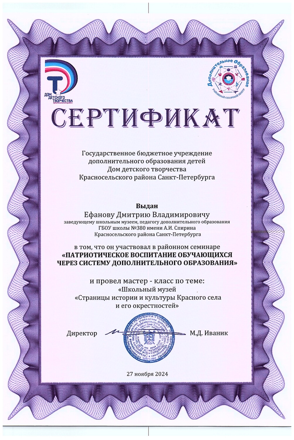 Ефанов Дмитрий Владимирович